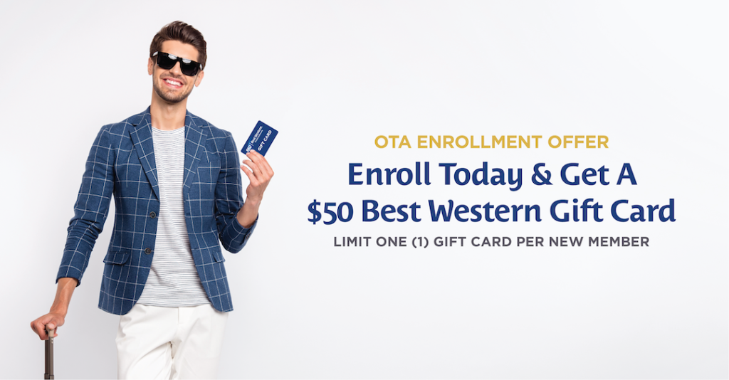 Best Western Rewards members are the most important element to the success of Best Western Hotels. When guests become loyal members, we can build long-lasting relationships with them to drive more revenue to our hotels. To support enrollment efforts on the property level and defend online travel agencies (OTAs), newly enrolled members that originally booked through third-party booking channels, will now receive a $50 Best Western Gift Card as a thank you for enrolling.